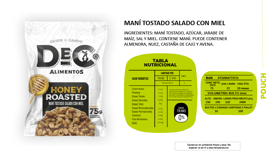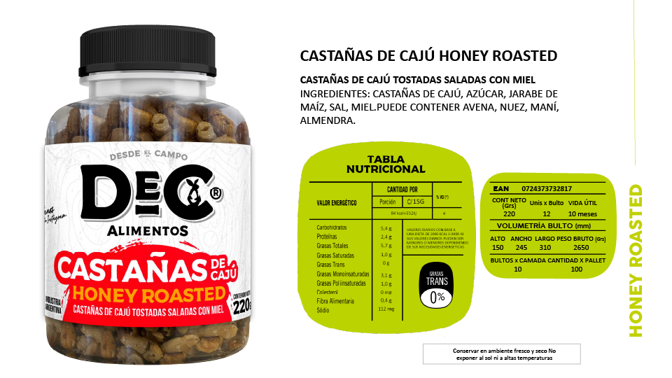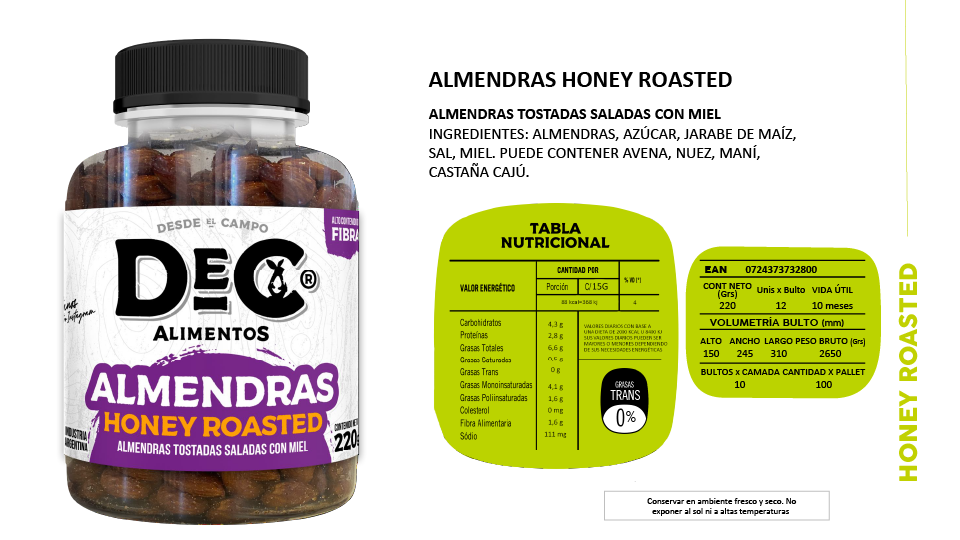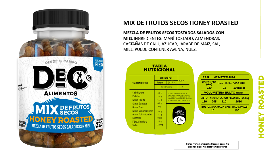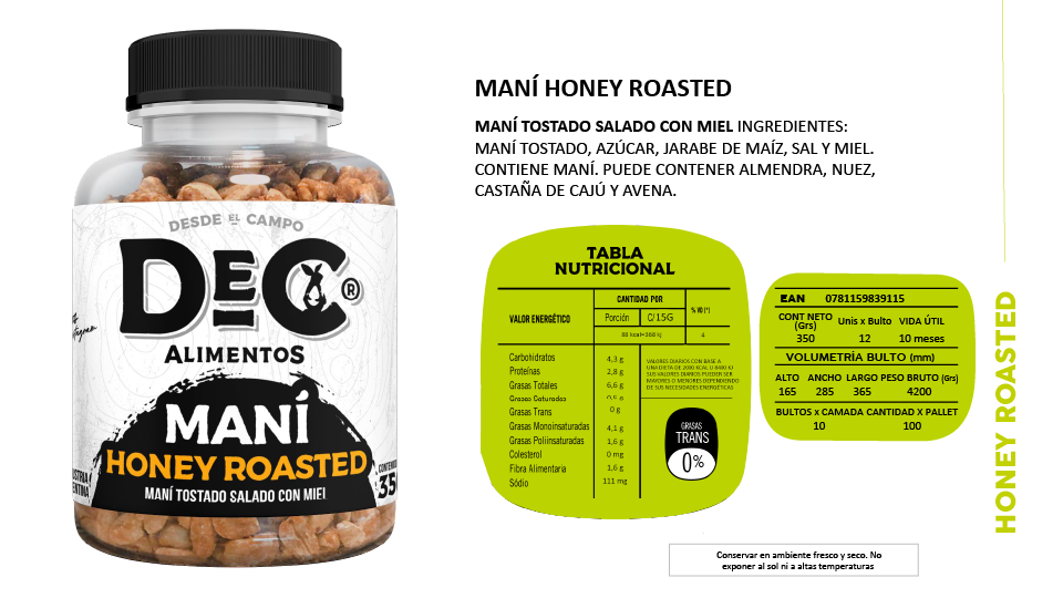 Línea Honey Roasted, Snacks de frutos secos y pasta de maní.